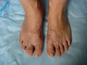 拇外翻的治療手術(shù)有130多種,然而傳統(tǒng)手術(shù)如McBride手術(shù)、Keller手術(shù)等或因為效果欠佳,或因為創(chuàng)傷大,因而在治療拇外翻畸形方面均存在不足之處。我院在總結(jié)治療拇外翻畸形各種手術(shù)方法的基礎(chǔ)上,向廣大拇外翻患者隆重推出微創(chuàng)矯治拇外翻手術(shù)。該術(shù)式適合治療各種拇外翻畸形,效果理想,不復(fù)發(fā);刀口小,僅一公分左右,手術(shù)時間短,痛苦小;術(shù)后固定簡單,患者早期即可下地活動。作為專業(yè)整形美容機構(gòu),我們將從治療及美觀兩方面為拇外翻患者提供優(yōu)良的服務(wù)態(tài)度,過硬的技術(shù),合理的治療費用,理想的治療效果,全面的術(shù)后跟蹤隨訪。